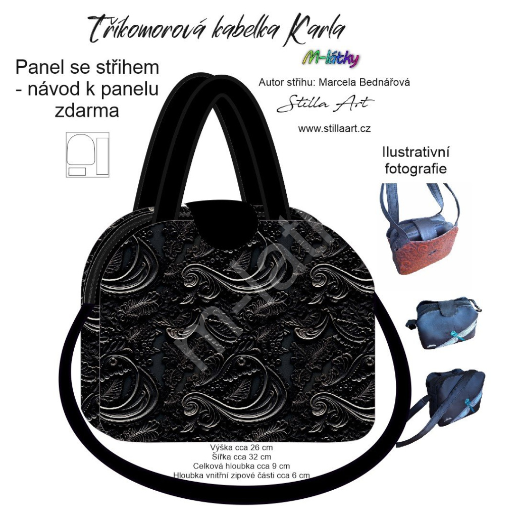 OB B - Panel k ušití - Tříkomorová kabelka Karla - střih Stilla Art (Marcela Bednářová) - 3D ornamenty kočárkovina fotonávod v popisu produktu