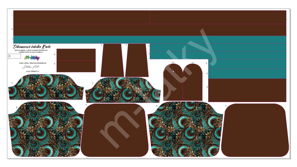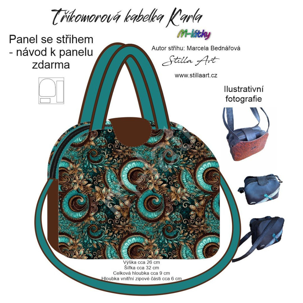 OB B - Panel k ušití - Tříkomorová kabelka Karla - střih Stilla Art (Marcela Bednářová) - ornamenty Imitace broušeného semiše fotonávod v popisu produktu