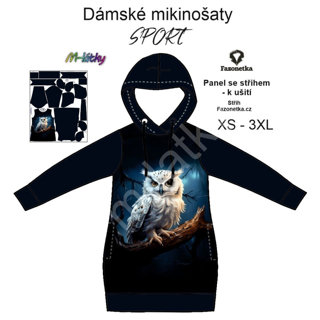 OB F - Panel k ušití - dámské mikinošaty SPORT XS - XXXL - bílá sova TOP10003-XXL Digitální tisk m-látky - výběr z variant střih Fazonetka