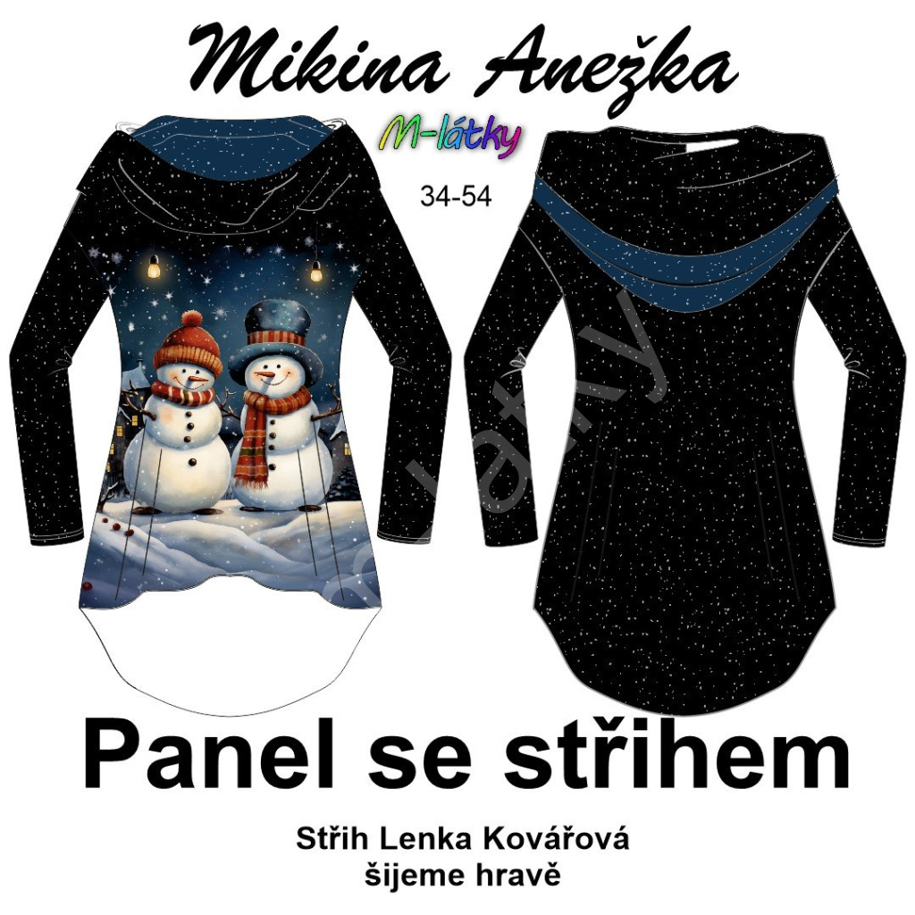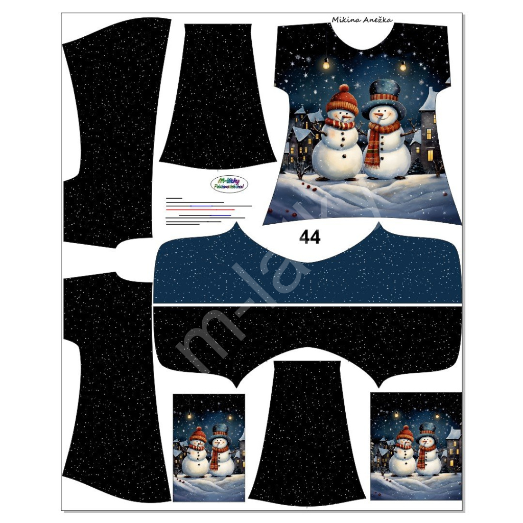 OB K - Panel se střihem - mikina/tričko Anežka - nakombinujte si varianty s kapucí, rukávy, nebo bez - sněhuláci Funkční úplet 30300001 46 digitální tisk m-látky – výběr z rozměrů a mateirálů