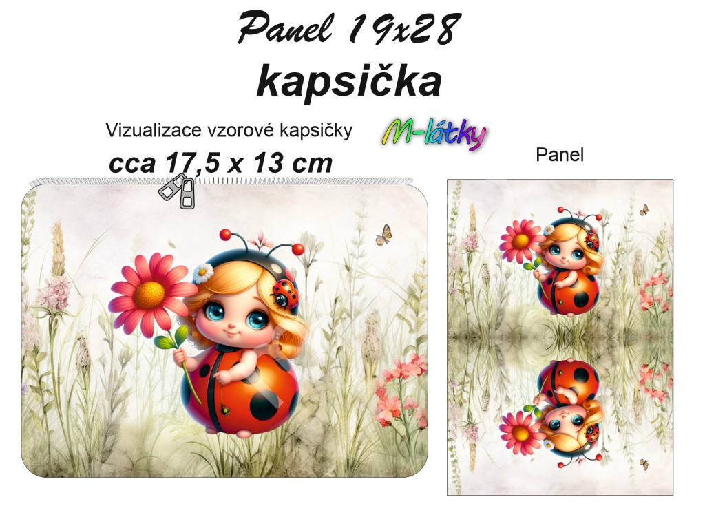 MOB Kapsička k nákupní tašce/kosmetická taštička - Beruška Panel k ušití - náš tisk na objednávku