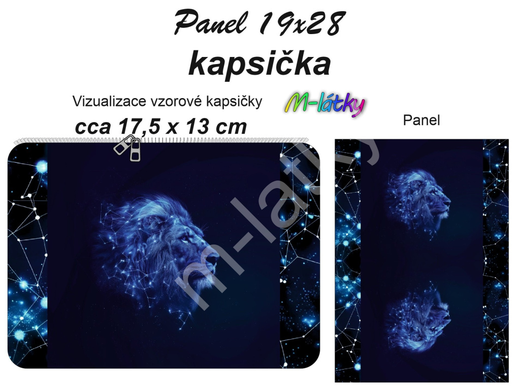 MOB Kapsička k nákupní tašce/kosmetická taštička - Lev Panel k ušití - náš tisk na objednávku