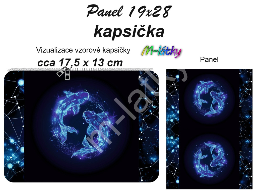 MOB Kapsička k nákupní tašce/kosmetická taštička - Znamení ryby Panel k ušití - náš tisk na objednávku