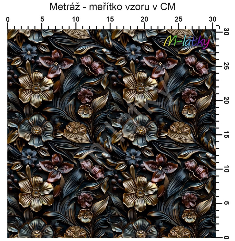 MOB Metráž 3D květy náš tisk na objednávku – výběr z materiálů