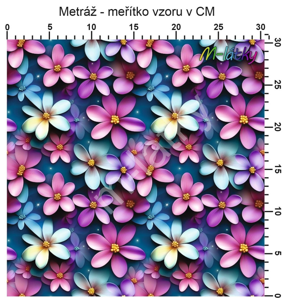 OB Metráž 3D květy náš tisk na objednávku – výběr z materiálů