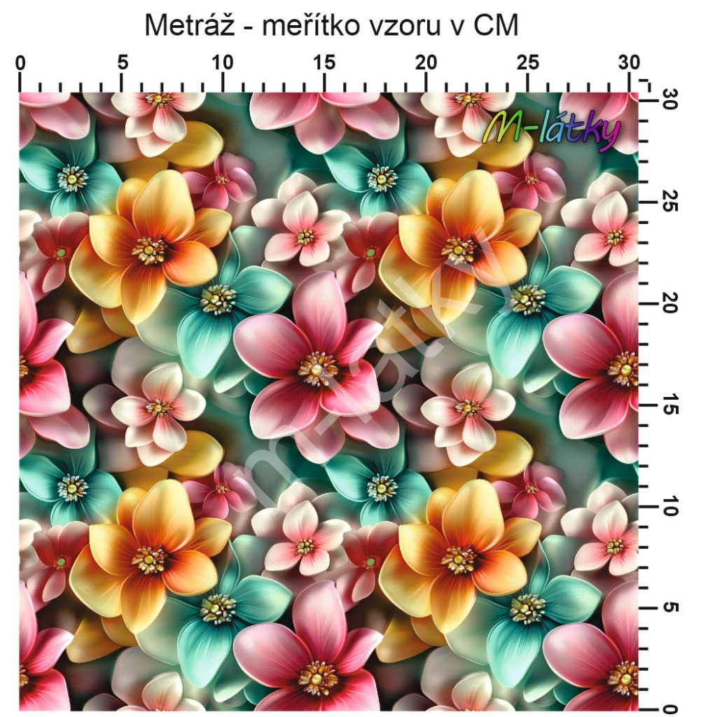 OB Metráž 3D květy náš tisk na objednávku – výběr z materiálů