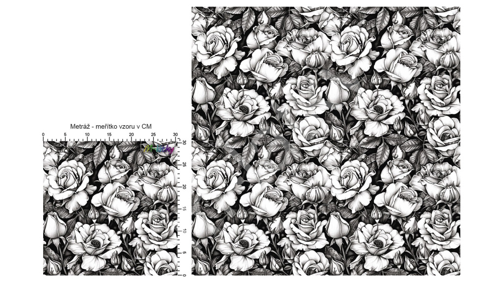 OB Metráž Black & white růže Funkční úplet 30300001 náš tisk na objednávku – výběr z materiálů