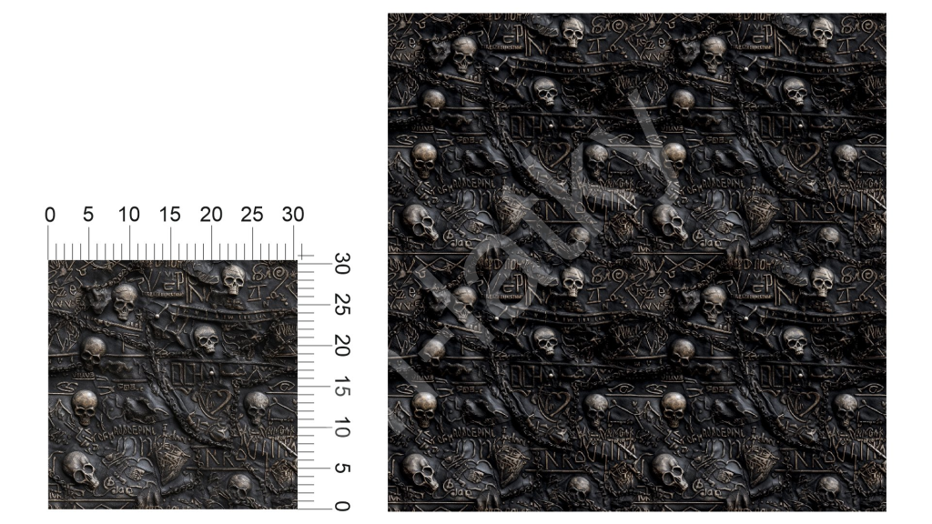 OB Metráž Gothic - Lebky (rockový Metráž ) náš tisk na objednávku – výběr z materiálů