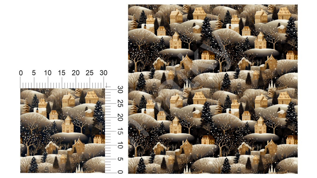 • Vzor - vánoční vzor - zimní krajina - domečky (1)