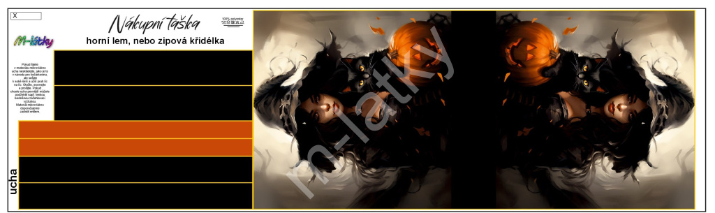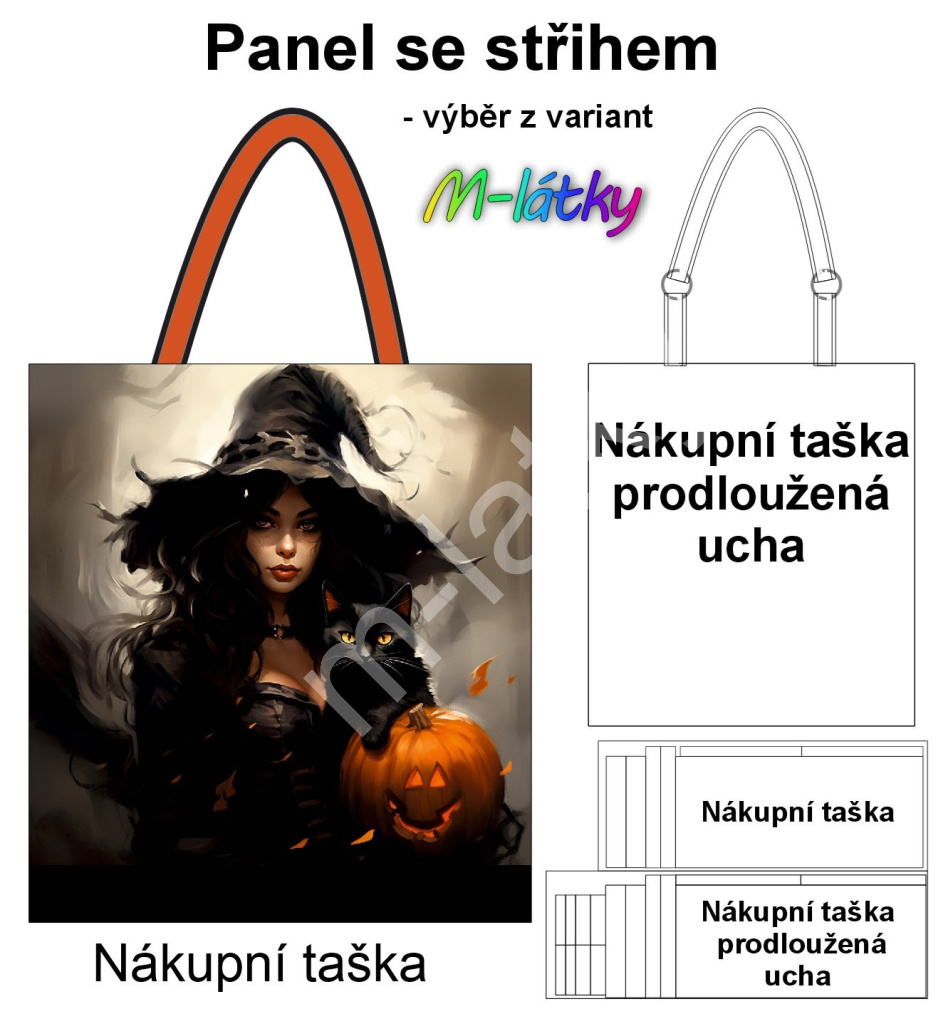 MOB Nákupní taška - Čarodějnice Halloween panel se střihem náš tisk na objednávku