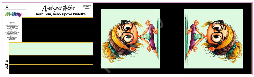 Bonusové taštičky jsou ve vzoru tašky, u panelu bez uch jsou obě stejné. Vzory nelze měnit. Žádosti o změnu v komentářích nebudou akceptovány.