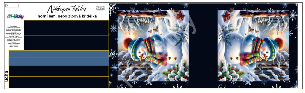 MOB Nákupní taška - sněhulák panel se střihem náš tisk na objednávku