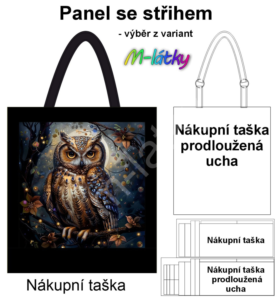 MOB Nákupní taška - sova panel se střihem náš tisk na objednávku