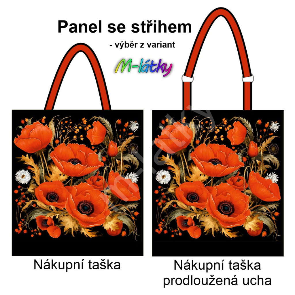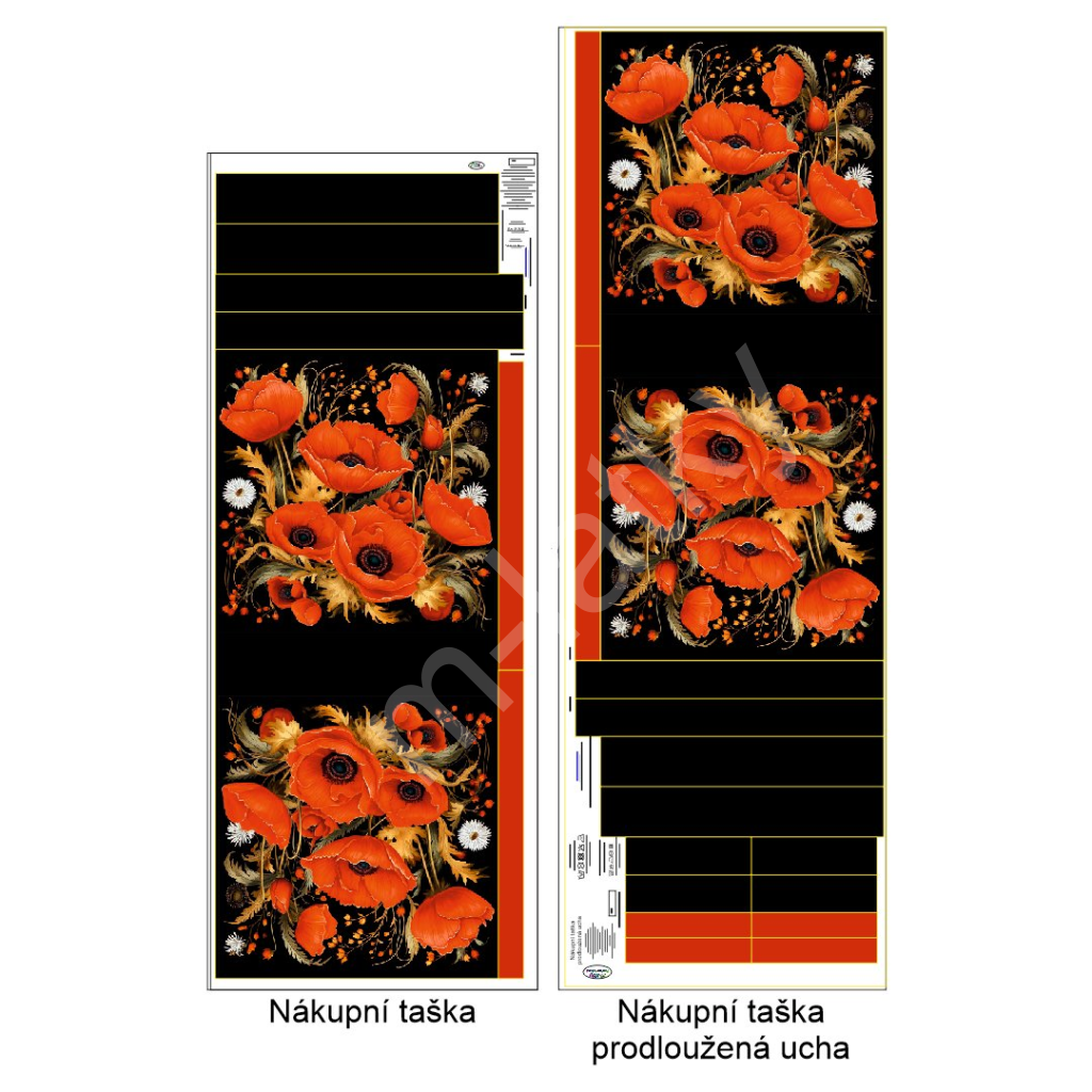 OB Nákupní taška - vlčí máky panel se střihem náš tisk na objednávku