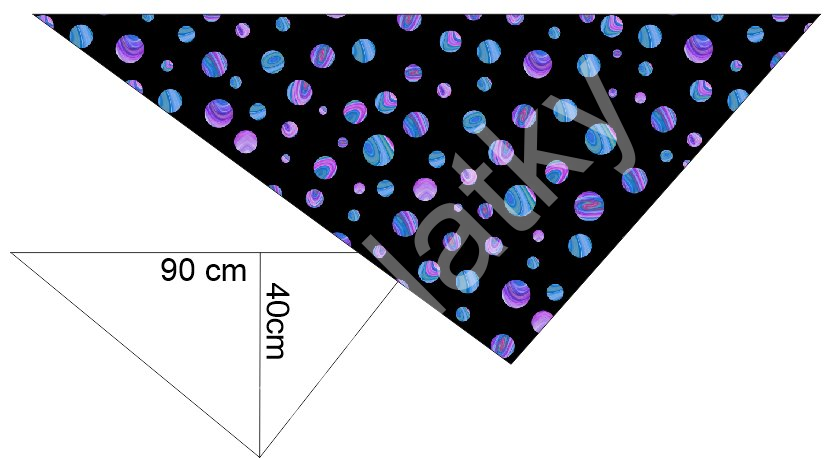 Na podšití šátku můžete použít např. minky - KLIK Cena je za panel  Uvedené rozměry  (+-3%) Velikost L   Přepona (nejdelší strana) cca 140 cm Výška (délka k cípu) cca 70 cm Velikost M Přepona (nejdelší strana) cca 90 cm… Více informací