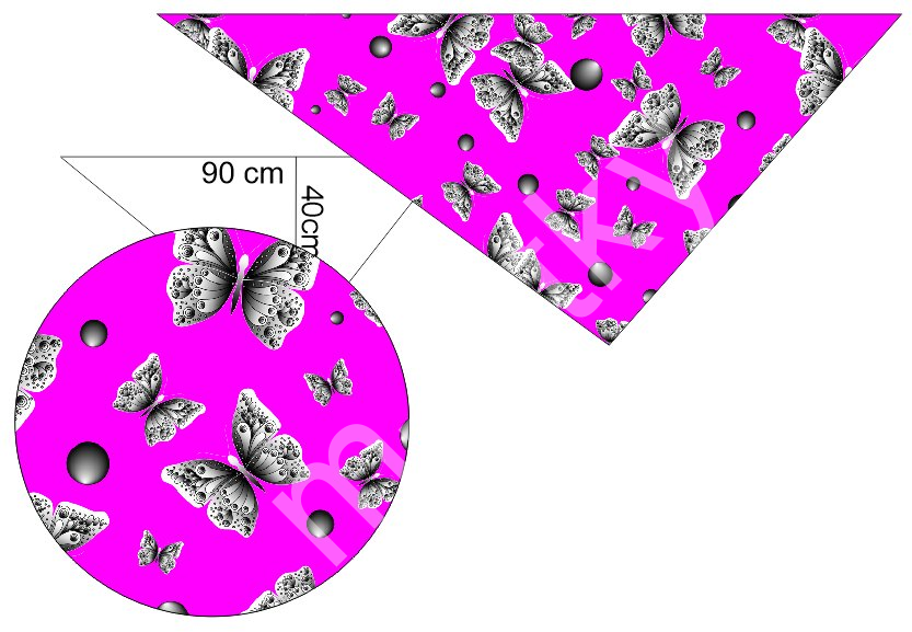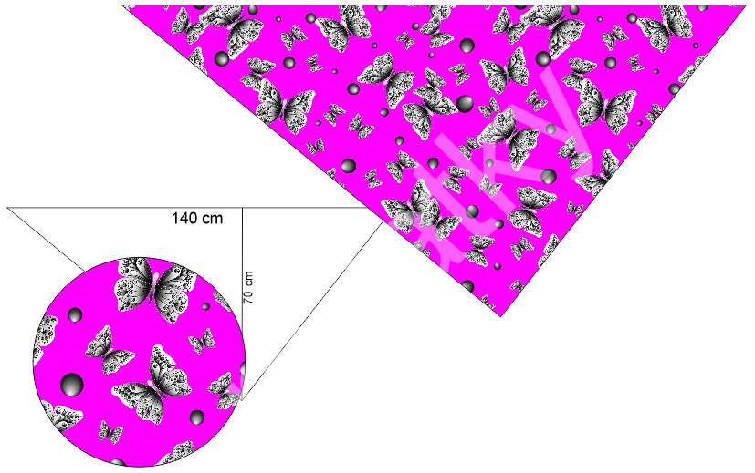 OB Panel k ušití - asymetrický trojúhelníkový šátek (šátko šála) - motýli L Úplet počesaný 74 92% polyester 8% elastan výběr z variant