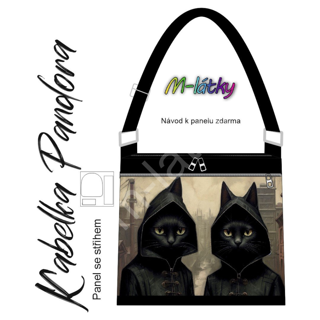 OB Panel k ušití - Crossbody kabelka Pandora - Gothic kočky Imitace broušeného semiše vlastní tisk na objednávku - výběr z variant