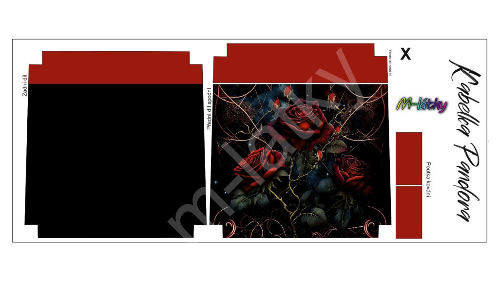 OB Panel k ušití - Crossbody kabelka Pandora - Gothic růže Imitace broušeného semiše vlastní tisk na objednávku - výběr z variant