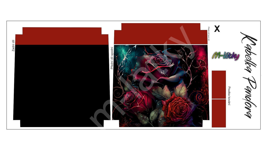 Panel k ušití - Kabelka Pandora (1) Panel k ušití - Crossbody kabelka Pandora - Gothic růře (3)