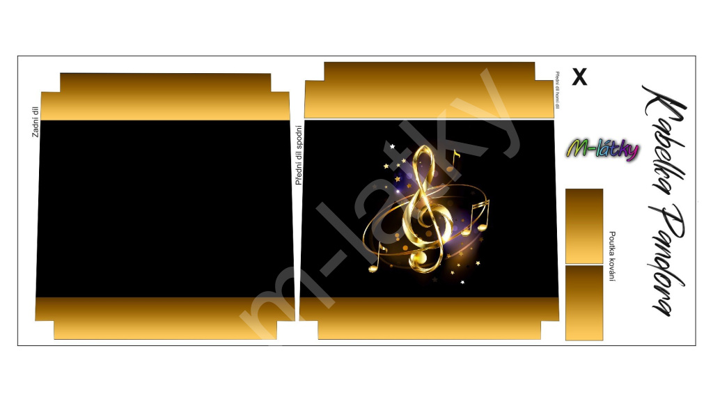 OB Panel k ušití - Crossbody kabelka Pandora - houslový klíč Imitace broušeného semiše vlastní tisk na objednávku - výběr z variant