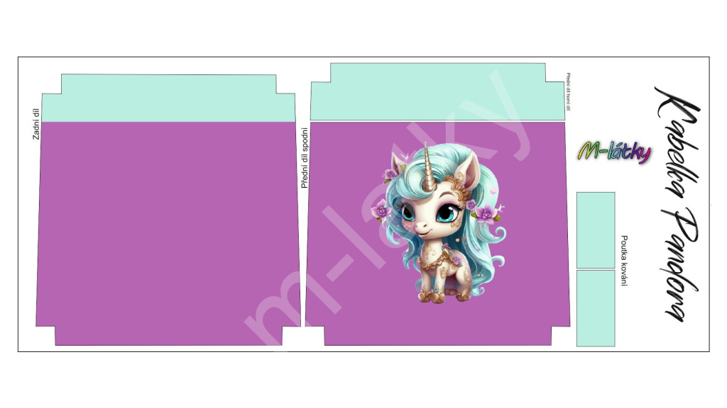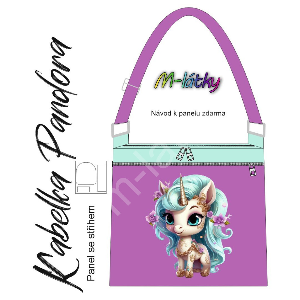 OB Panel k ušití - Crossbody kabelka Pandora - Jednorožec Imitace broušeného semiše vlastní tisk na objednávku - výběr z variant