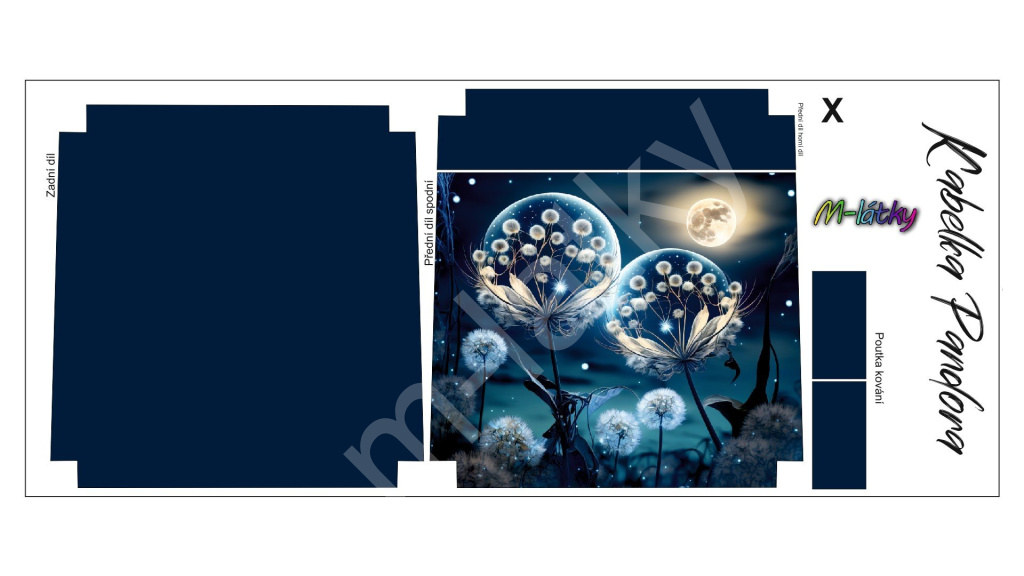 Panel k ušití - Kabelka Pandora (1) Panel k ušití - Crossbody kabelka Pandora - pampelišky (3)