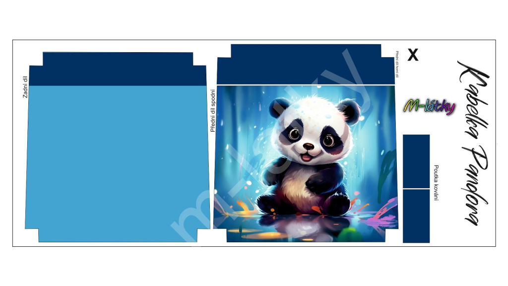 OB Panel k ušití - Crossbody kabelka Pandora - panda Imitace broušeného semiše vlastní tisk na objednávku - výběr z variant