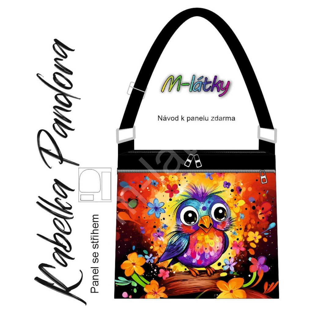 OB Panel k ušití - Crossbody kabelka Pandora - Pták kočárkovina vlastní tisk na objednávku - výběr z variant
