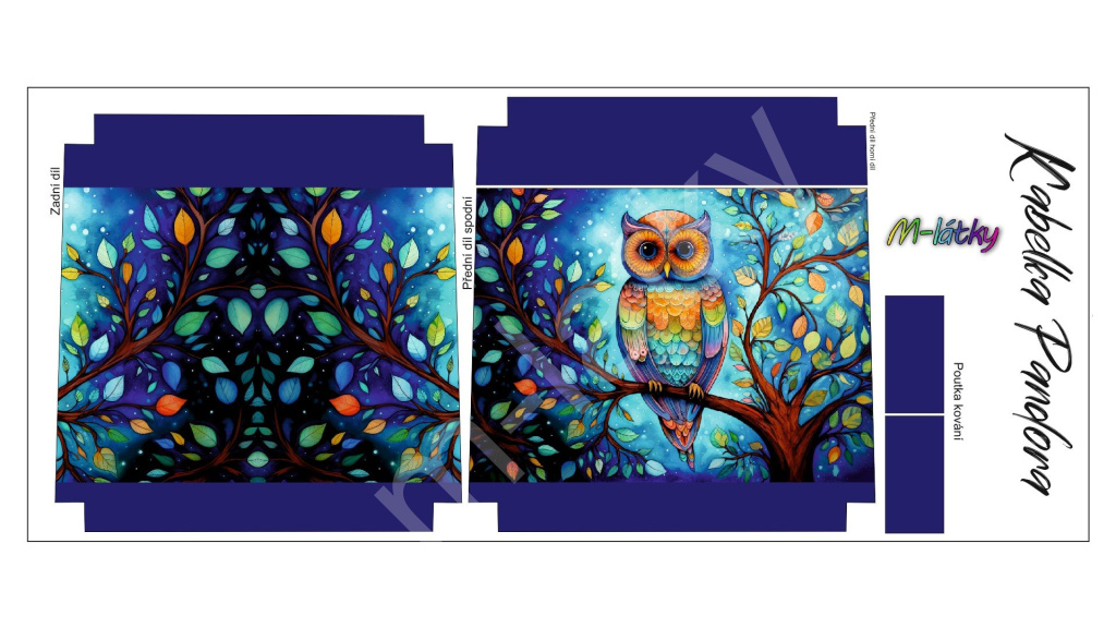 OB Panel k ušití - Crossbody kabelka Pandora - Sova kočárkovina vlastní tisk na objednávku - výběr z variant