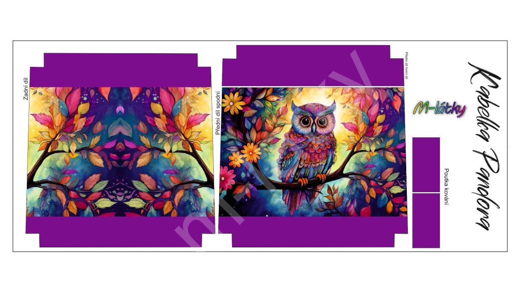 Panel k ušití - Kabelka Pandora (1) Panel k ušití - Crossbody kabelka Pandora - Provance - Sova (3)
