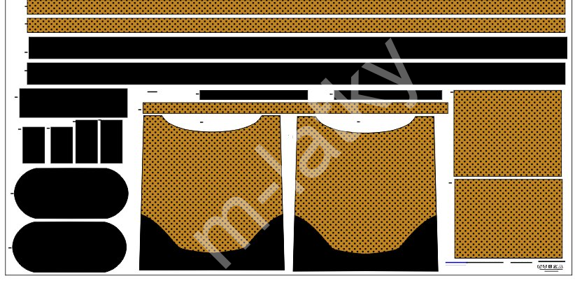 Tento batoh má dvě varianty šití uch – buď ušijete jedno dlouhé, nebo dvě, která jsou vzájemně prohozena. Panel je připraven na ušití obou variant, abyste si mohli zvolit, která vám lépe vyhovuje. Rozdíl je pouze v typu a počtu kování, které budete potřebovat. Pro zjednodušení vám zde uvedu spotřebu variantu kování pro zdvojených uch, která se dá použít i pro ucho jednoduché.