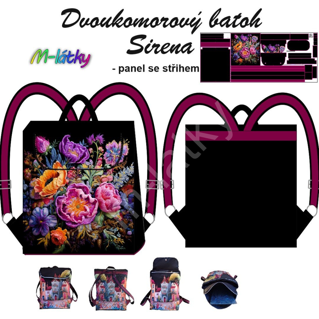Batoh je vhodný pro pokročilé švadlenky. Pokud jste začátečníci doporučuji napřed ušít batoh Sissi, po té kabelku Renata a pak až batoh Sirena, který je kombinací obou.