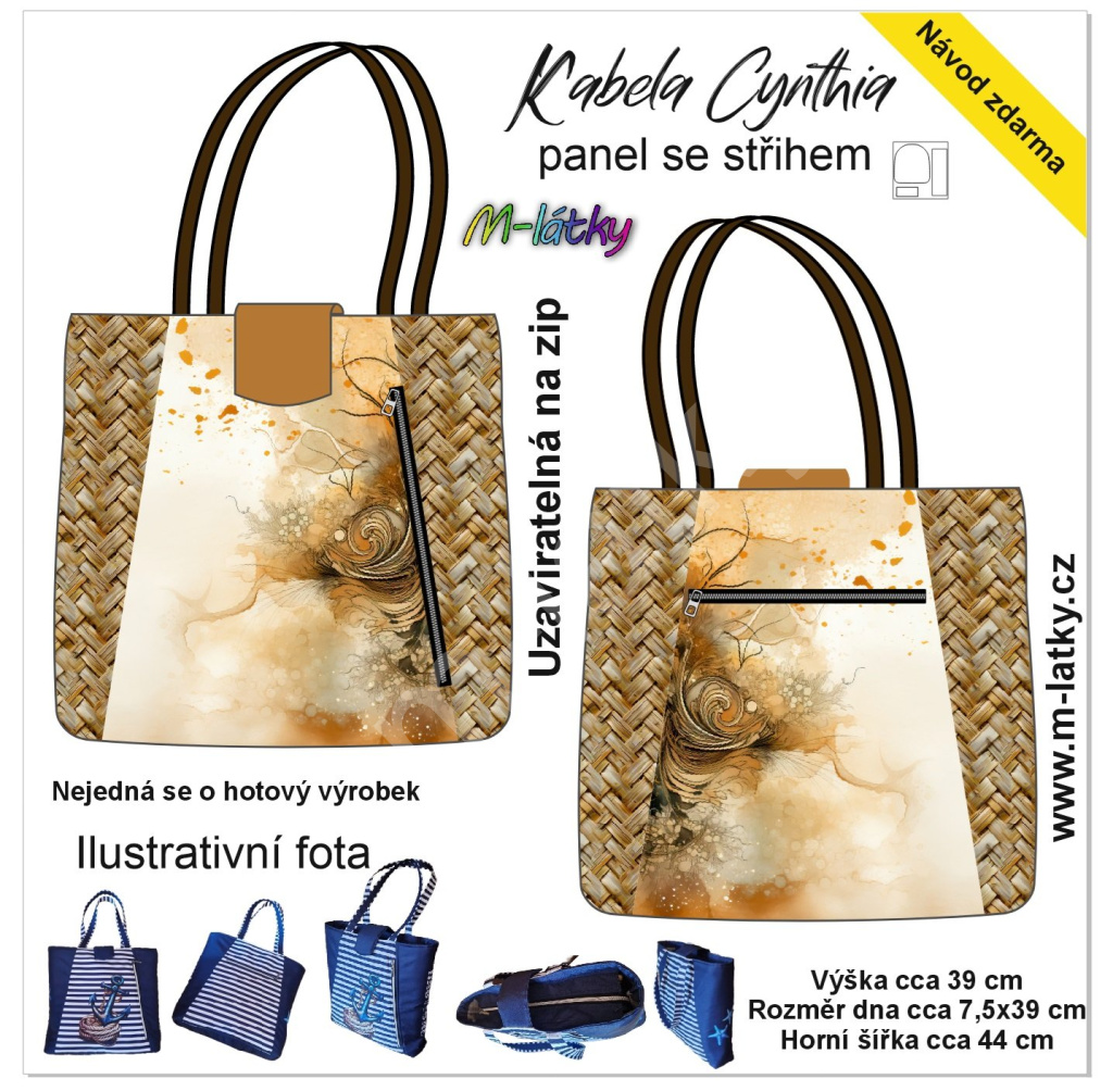 Kabela má dvě delší ucha k nošení přes rameno (délka jednoho ucha před ušitím je cca 72 cm)